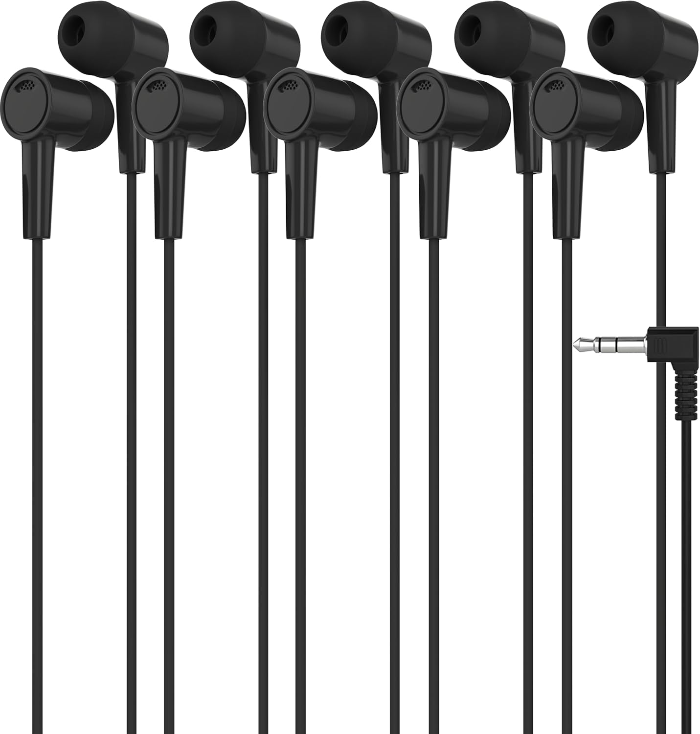 5 Pack Earbuds in-Ear Stereo Headphones for School Classroom, Library, Travel, Gym 3.5mm Jack, Tangle-Free Wired Earphones for MP3, Phones, Computer and Laptops, Black