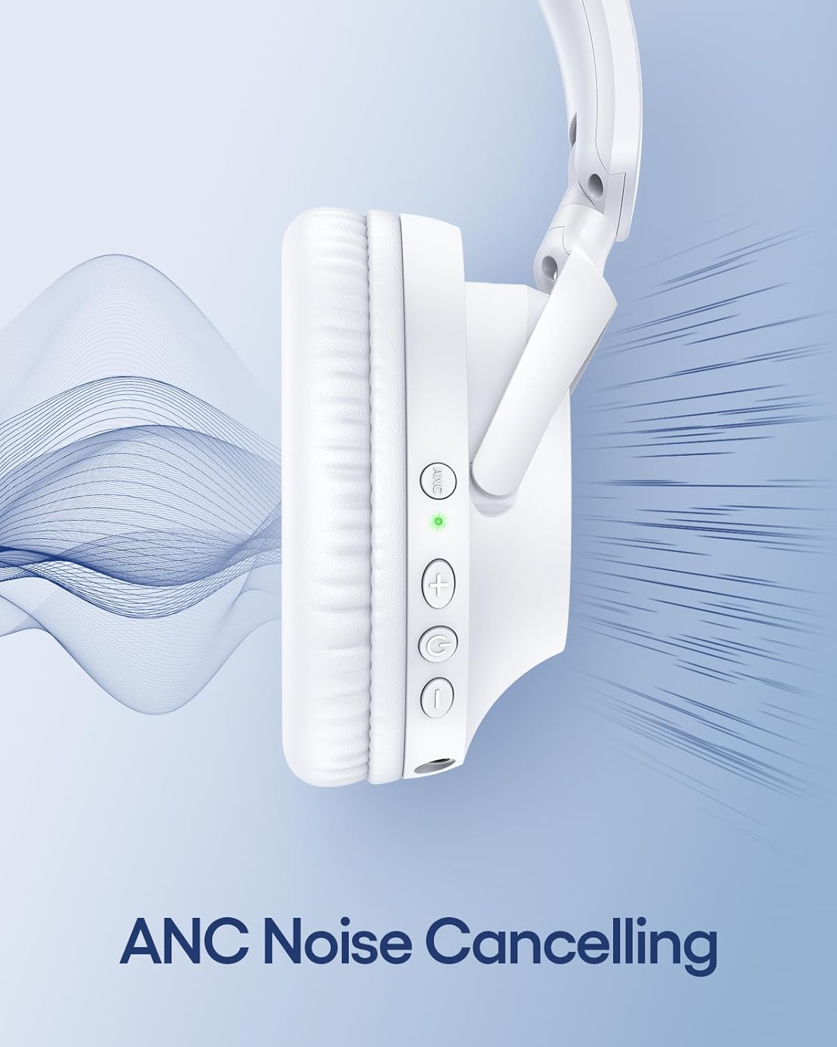 Active Noise Cancelling Headphones 100H Playtime Wireless Over Ear Bluetooth Headphones Fast Charging Earphones with Deep Bass Comfort Light Weight Headsets for Travel Home Office PC White