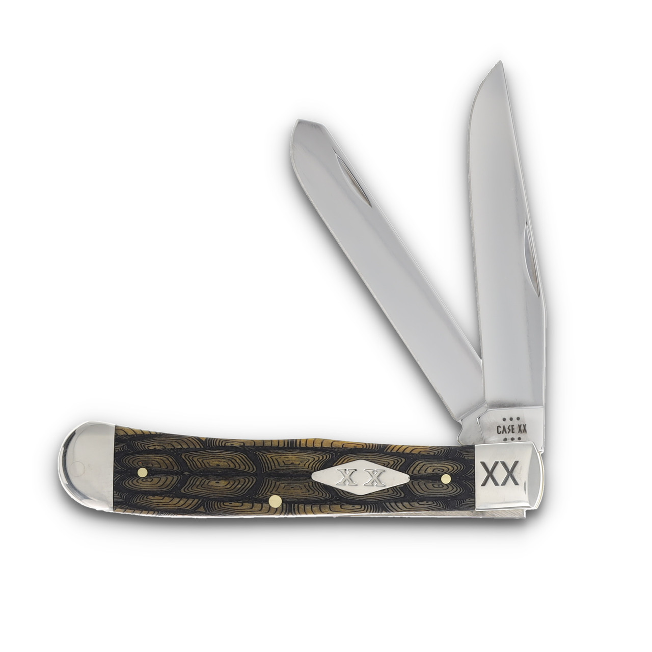 Case XX Smooth Olive Bone Tortoise Shell Trapper Folding Knife with XX Engraved Bolsters CA10240TS