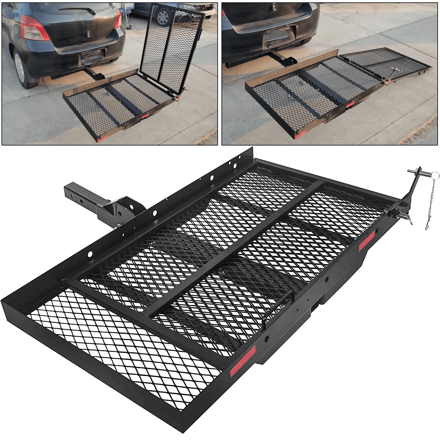 HECASA 500lbs Carrier Hitch Mounted Cargo Folding Scooter and Wheelchair Carrier Mobility Rack with Loading Ramp
