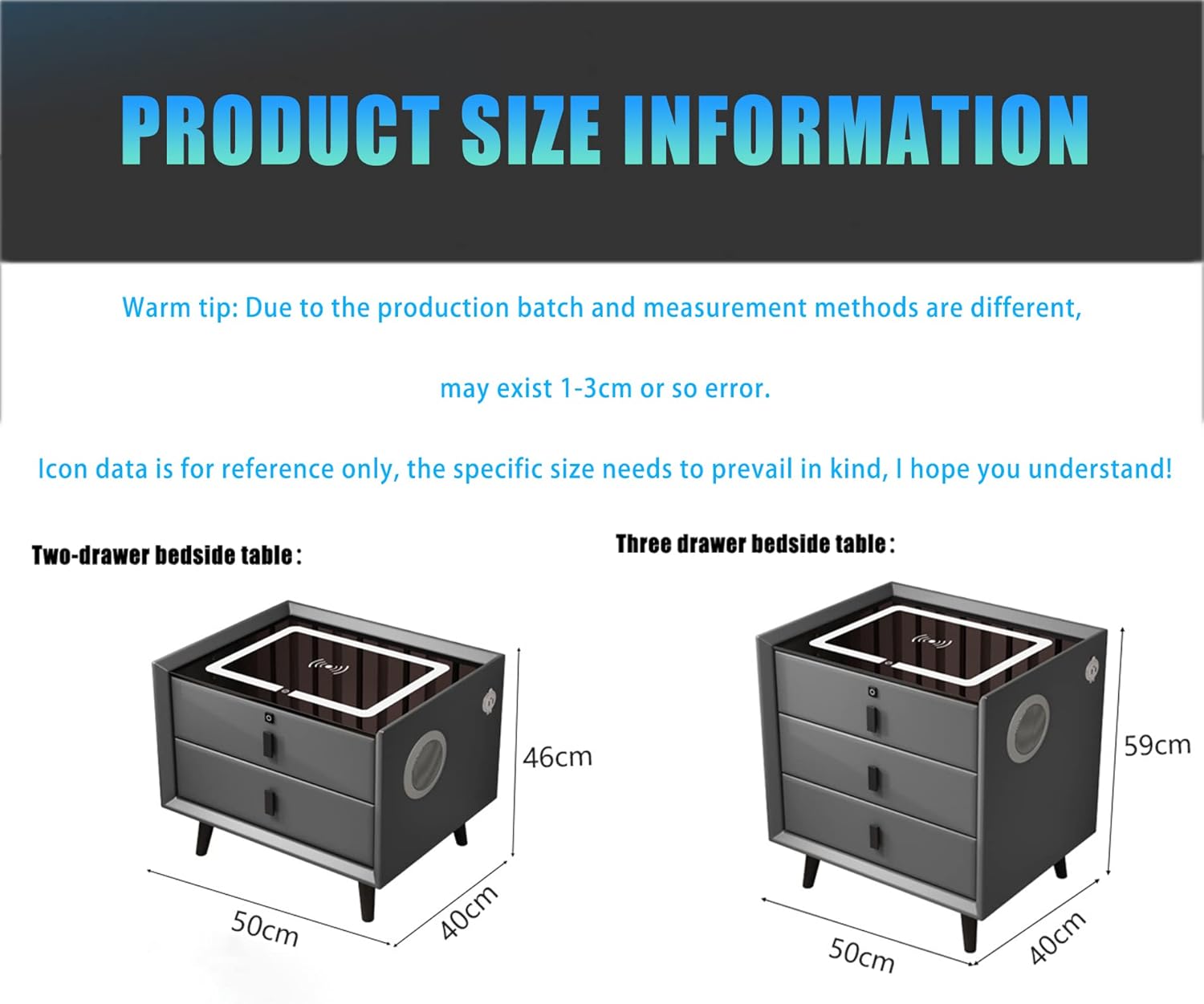 ◉[Multifunctional Locker]USB, wireless charging, night light, fingerprint lock, dual speakers, smart nightstand. The LED drawer nightstand is equipped with 3-color LED backlighting (warm/cool/natural). Just press the touch button to adjust the light effect.