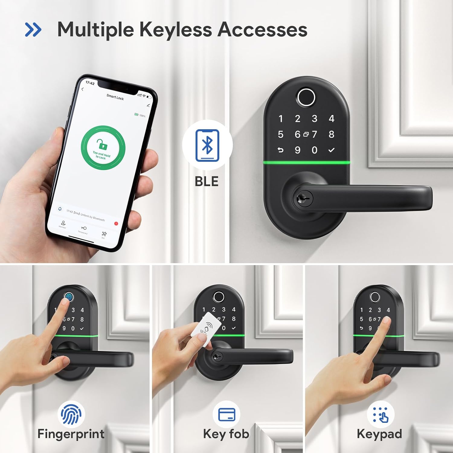 Smart Keypad Door Lock with Handle: Keyless Entry Electronic Lock for Front Door, Easy Installation (Black)