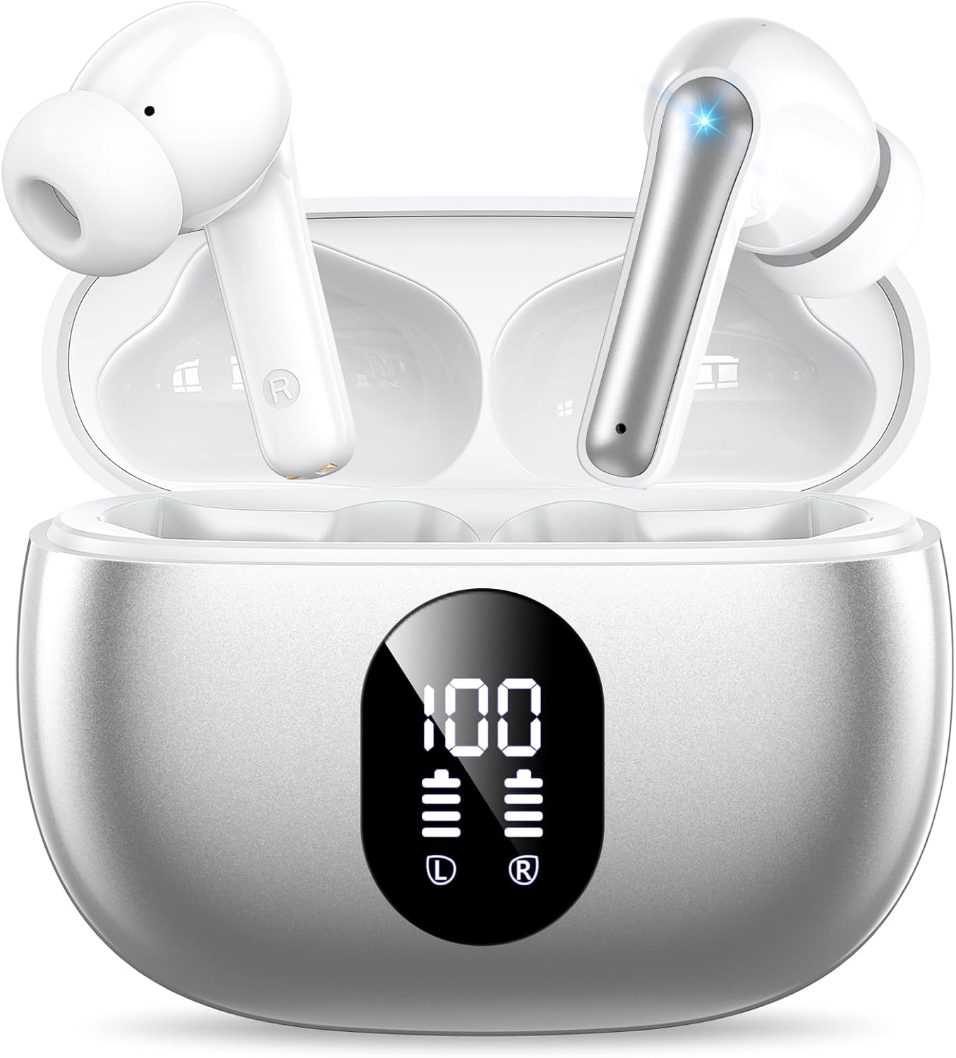 Fast Charging – Charging Case for Wireless Earbuds: The wireless bluetooth headphones is equipped with a Type-C port for faster charging. You can use the included USB Type-C cable of Bluetooth earbuds to charge the case with any compatible charging adapter (not included). The dual LED digital power display shows the remaining battery life of the case and the charging status of the earbuds